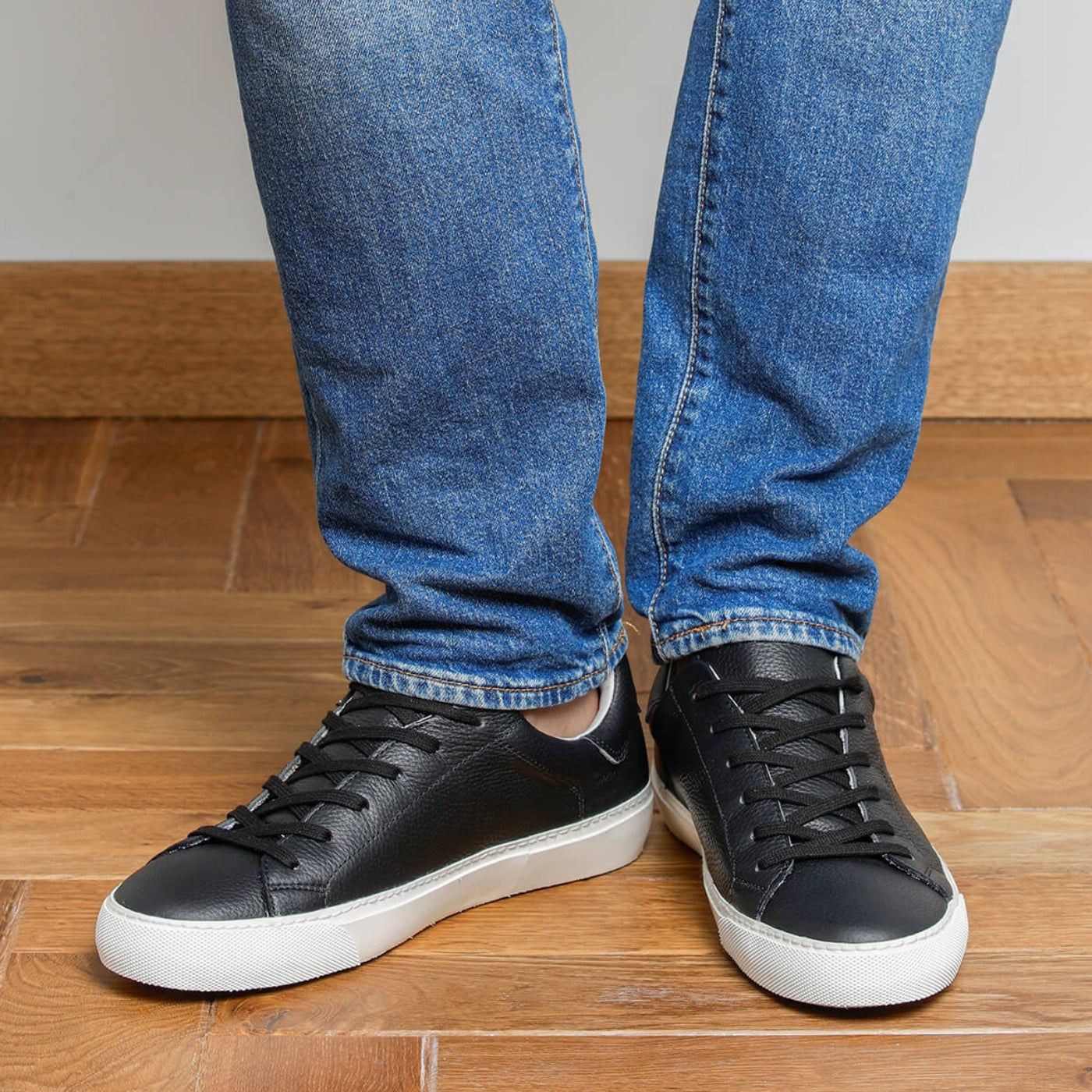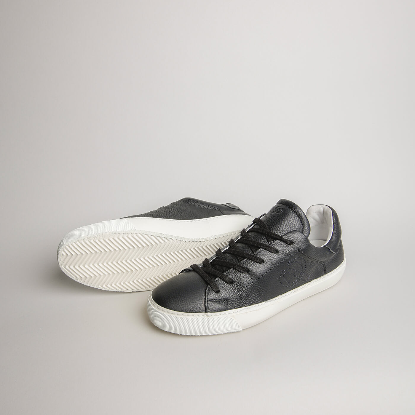 Questa sneaker presenta una tomaia in pelle martellata nera, apprezzata per la sua texture naturalmente goffrata e la sua morbidezza. Le cuciture e i lacci tono su tono preservano una silhouette elegante e minimalista, mentre la suola bianca aggiunge contrasto e struttura. Un capo essenziale e versatile, realizzato per durare a lungo e per un uso quotidiano di alto livello.